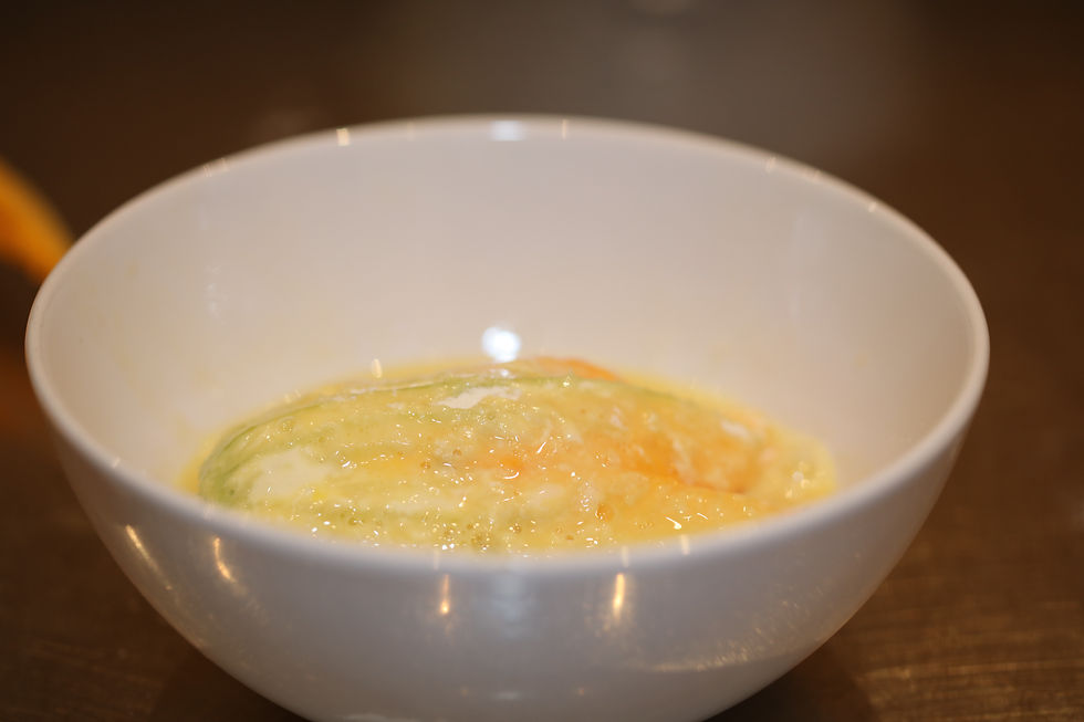 5. Обмакнуть нафаршированные цветы кабачка сначала во взбитые яйца.